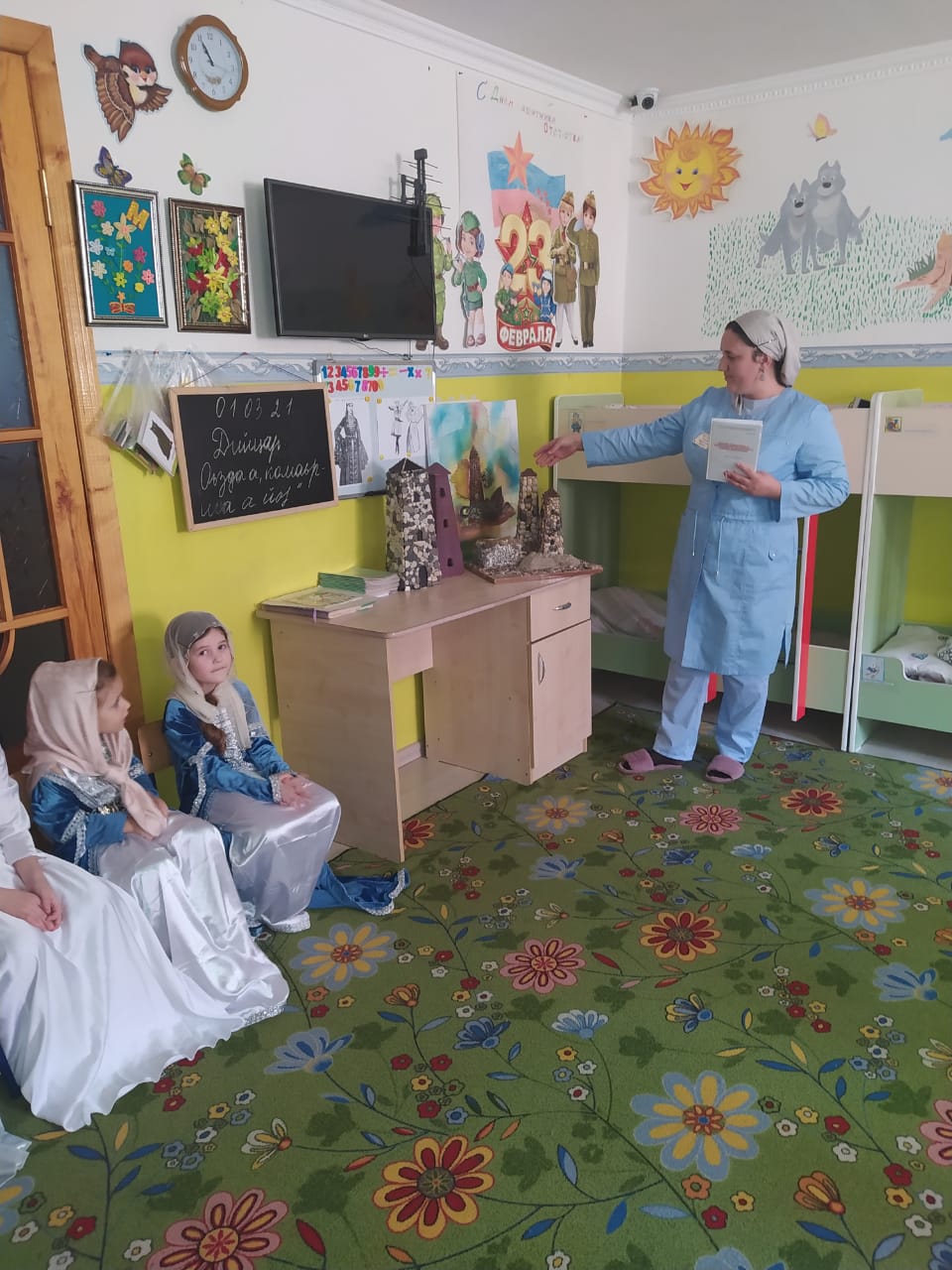 Так, 01.03.2021г. в старшей группе "Ласточки" (присутствовали 33 детей и 1 воспитатель) была рассказана сказка "Оьзда а, комаьрша а йо1".